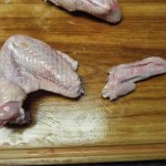 At the end of the process, you hope to have two “hind quarters”, leg and thigh attached (the dark meat), two “front quarters”, skin-on breasts (the white meat), and the wings, either whole or separated into drumette and wingette (real terms — I don’t make this stuff up).