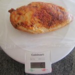 Canada Food Guide standards define a single serving of meat as 2 ½ ounces. Half a chicken breast of the size pictured is a generous serving. I don’t know what your appetite is like, but it helps to be aware of the quantity of nourishment you’re ingesting.