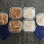 Microwaving a bit of veg, or assembling a small salad takes very little time, but cooking meat is a bigger project. I like to keep cooked chicken breasts in my freezer, individually wrapped, so I can protein-up that salad, or make a sandwich (hot or cold), or turn my frozen noodles into a stir-fry without making a big mess. Preparing a large number of chicken breasts is really easy — I do it on the same afternoon when I’m preparing the noodles, rice and potatoes. When everything is done, I don’t have to do any kind of big cooking for a couple of months at least. You really don’t need to invest in those pre-fab cooked chicken products, with their high sodium levels and preservatives, when you can make a better product yourself.